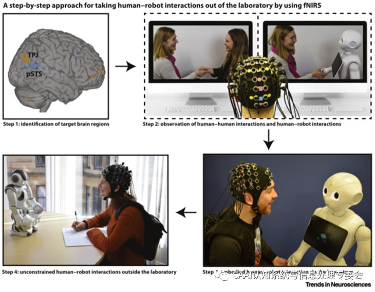在現實世界中,可以采用逐步的方法來實現實驗室之外的不受約束的人機交互。D一步是識別與社會認知過程相關的大腦區域,如之前的發現;隨后,基于屏幕的研究探索了這些區域在觀察人人和人機交互過程中的參與情況;第三步是在實驗室環境中與機器人進行相對不受約束的交互;后一步是允許在日常環境(如學校和家庭)中與機器人進行具體交互。每一步的結果都可以為下一步使用的方法和分析提供信息。