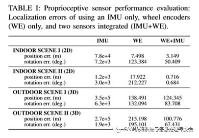 表I顯示,當IMU和車輪編碼器融合在一起時,運動估計效果顯著提G。