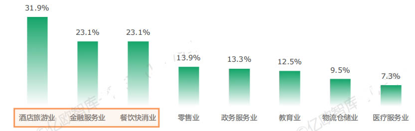 短期:酒旅行業(yè)滲透率較G,倉(cāng)儲(chǔ)物流等行業(yè)擁有龐大的增量機(jī)會(huì),各大廠商正在積J布局相應(yīng)服務(wù)場(chǎng)景
