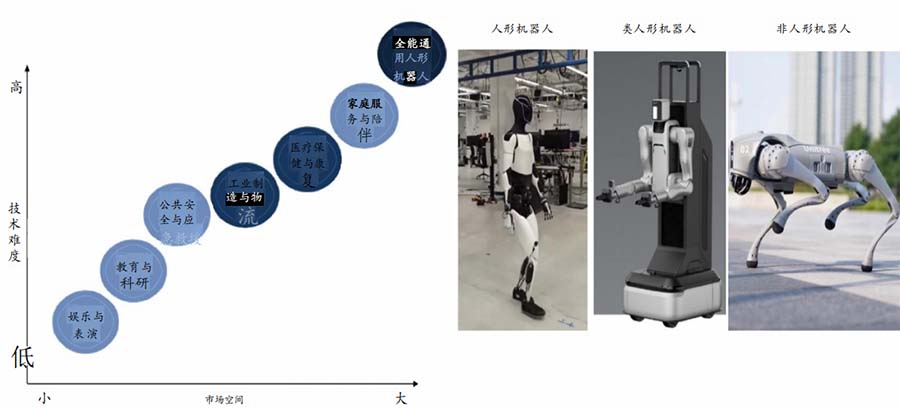 國內機器人大多瞄準三類下游進行布局,產品形態由非人形到類人形逐步拓展至雙足人形。人形機器人可