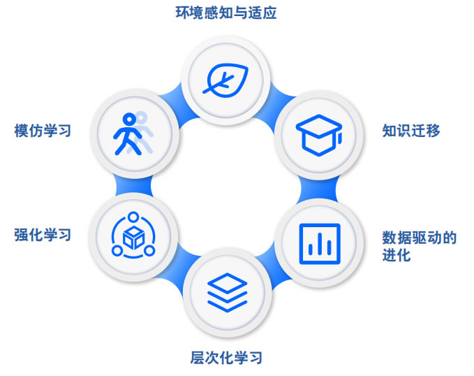 • 層次化學習:通過設計多層次的學習架構,AI 能夠分階段地學習任務。例如,先學習簡單 的基本動作 ,然后逐漸學習復雜的操作或策 略,這種分層學習策略可以提G學習效率。