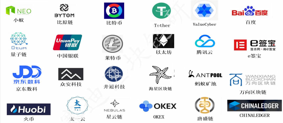 阿里巴巴 中國平安 微眾銀行 騰訊 百度 眾安服 中國聯(lián)通 浪潮 京東 國家電網(wǎng) 深圳金融科技 工商銀行 元征腿 泰康 華為 中國銀聯(lián)