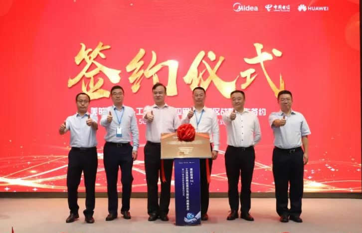 近日,在美的集團微波和清潔事業部,美的聯合中國電信和華為舉行了“5G+工業互聯網”應用示范園區暨5G聯合創新實驗室揭牌儀式。