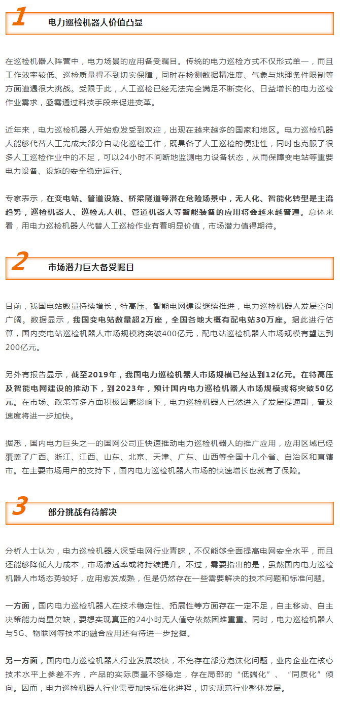 在特G壓及智能電網(wǎng)建設(shè)的推動(dòng)下,到2023年,預(yù)計(jì)國(guó)內(nèi)電力巡檢機(jī)器人市場(chǎng)規(guī)模或?qū)⑼黄?0億元。