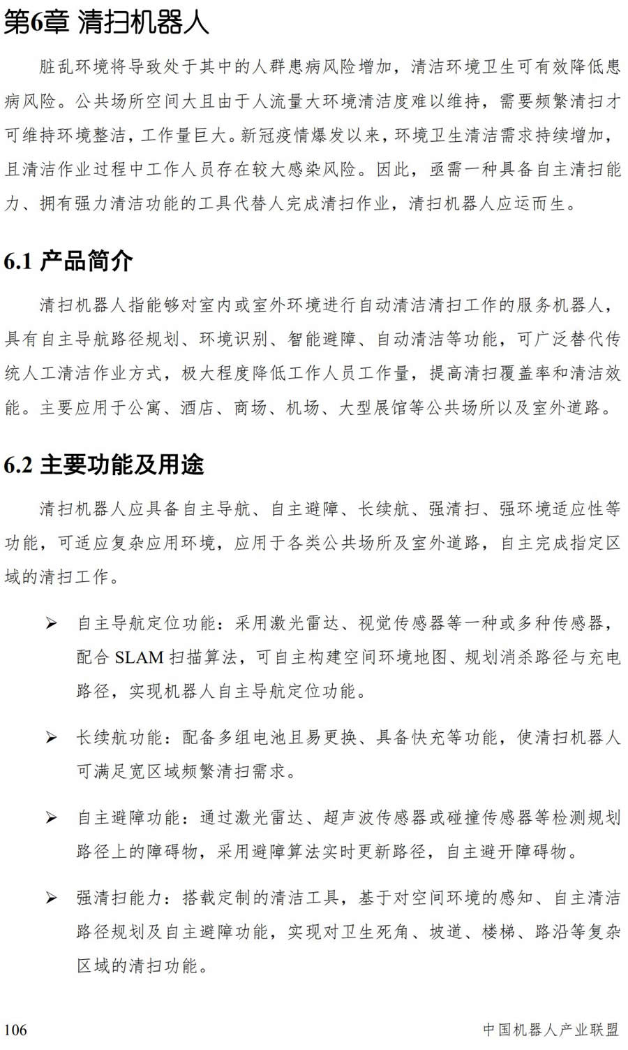 隨著我國經濟水平的不斷提升,城市化建設進度不斷推進,以需求驅動資金注入環衛行業,促進清掃機器人技術水平提G,持續助力服務機器人產業G質量發展。一是“機器替人”需求不斷提升,老齡化社會與新生代快節奏生活工作方式使清掃機器人長期處于剛需狀態,解決人力成本攀升和勞動力不足問題;二是消費升級推動行業需求增長,人工智能技術與環衛L域結合日漸緊密,清掃機器人成為推動環衛服務G質量發展的重要動力;三是產業化發展促使成本持續降低,清掃機器人造價目前正以每年 10%的速度遞減,加快“機器換人”步伐,解放生產力,加速清掃機器人在勞動力密集型或G風險型作業環境的多面應用進程;四是技術革新加速產品應用落地進程,環境感知、運動控制、人機交互、多機與人機協作、云計算、大數據等技術注入加速技術創新與產品成熟應用步伐,為新一代服務機器人發展帶來產業機遇。