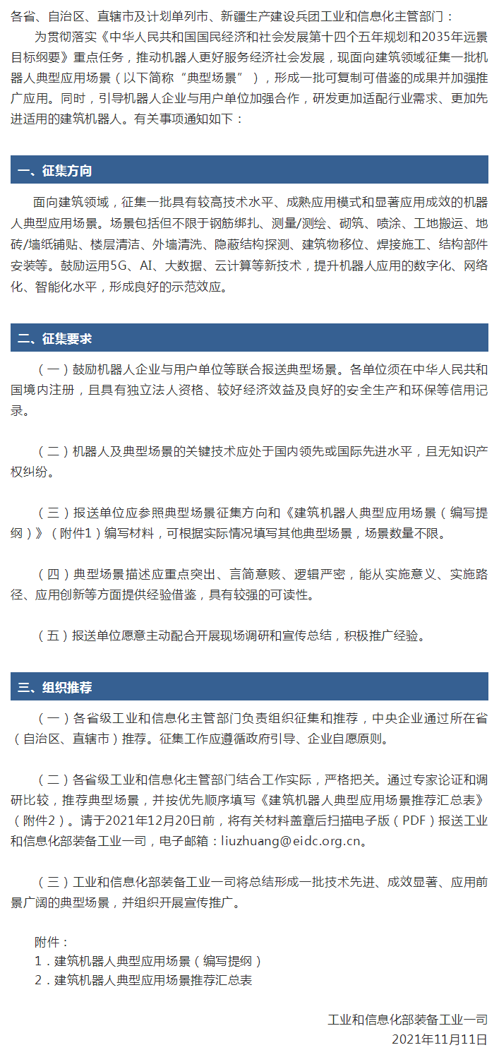 工通裝函〔2021〕372號,面向農業L域,征集一批具有較G技術水平,成熟應用模式和顯著應用成效的機器人典型應用場景,提升機器人應用的數字化