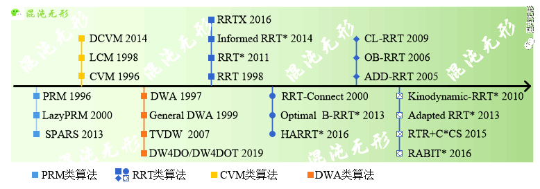 圖規(guī)劃算法與空間采樣算法已經(jīng)能夠在諸多場景下的規(guī)劃生成一條無碰撞路徑,實時性和動態(tài)適應(yīng)性逐漸提升,但多數(shù)算法仍存在路徑質(zhì)量差、未考慮動力學約束等問題。