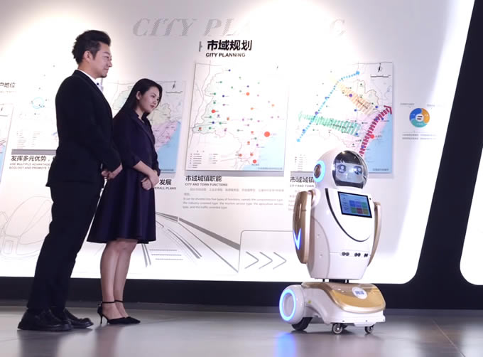 機器人能夠一邊引導(dǎo)觀眾參觀,到達(dá)每一個展位還能進(jìn)行專業(yè)的講解服務(wù),機器人不知疲勞,沒有心情不好的時候,不會又小情緒,在展館展廳的講解服務(wù)方面會比人工做的更到位。