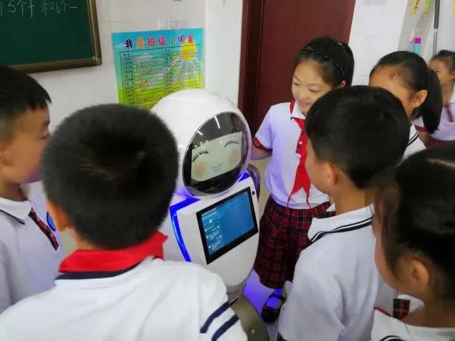 智能交互機器人正在課堂上與學生們互動呢,這是課堂互動現場...